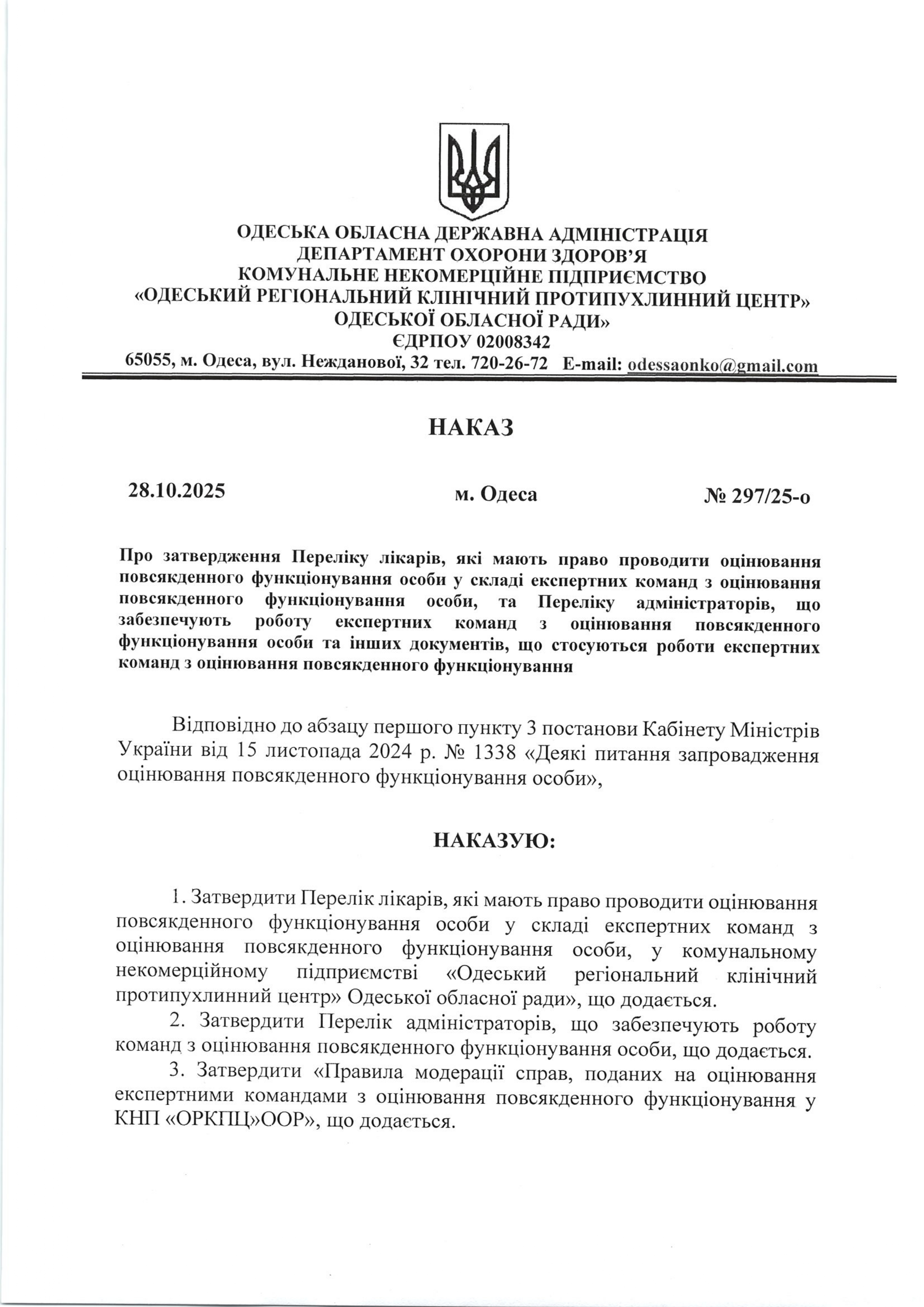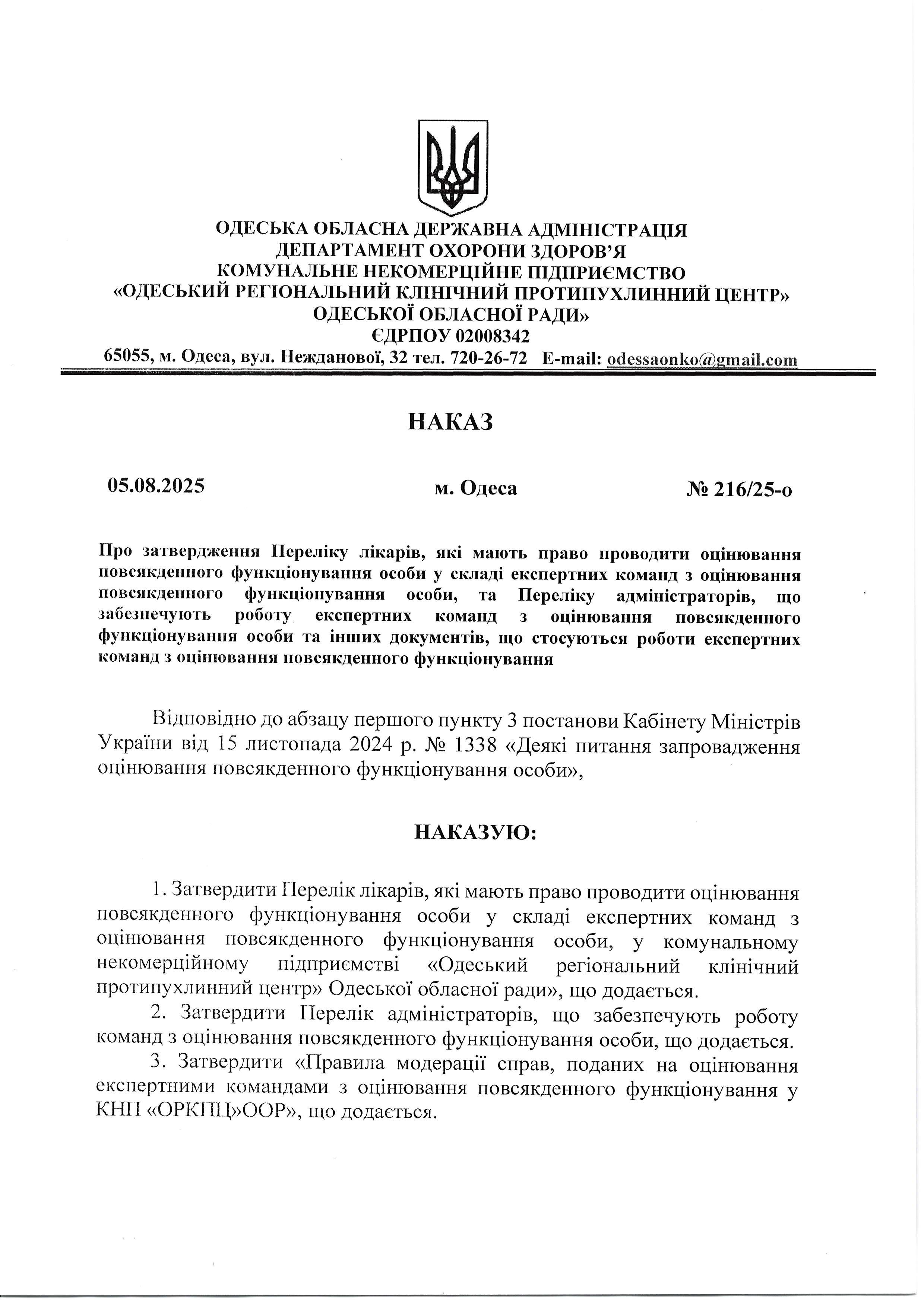 ГоловнаЕкспертиза ОПФОПерелiк лiкарiв, якi мають право проводити оцiнювання повсякденного функцiонування особи у складi експертних команд з оцiнювання повсякденного функцiонування особи