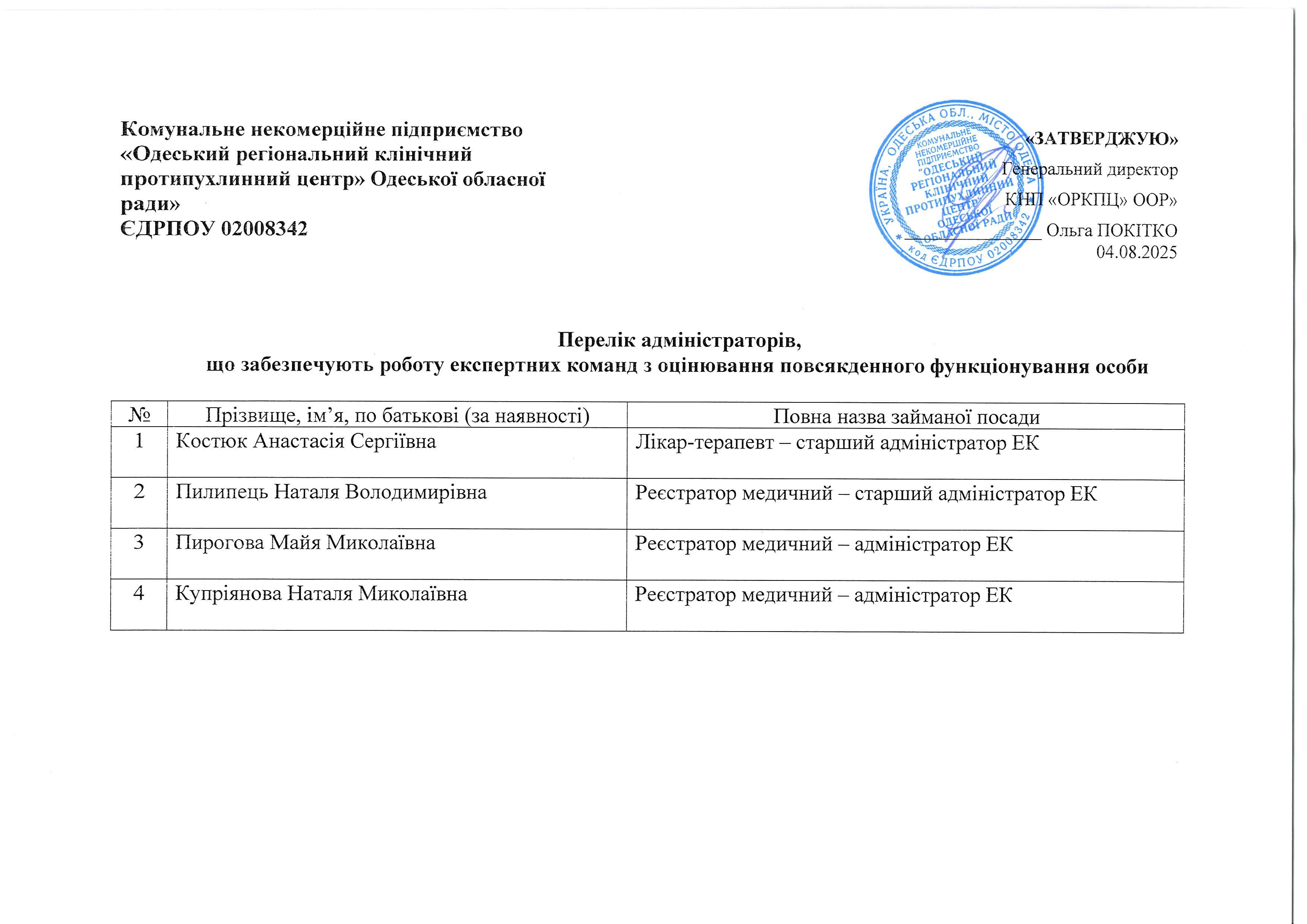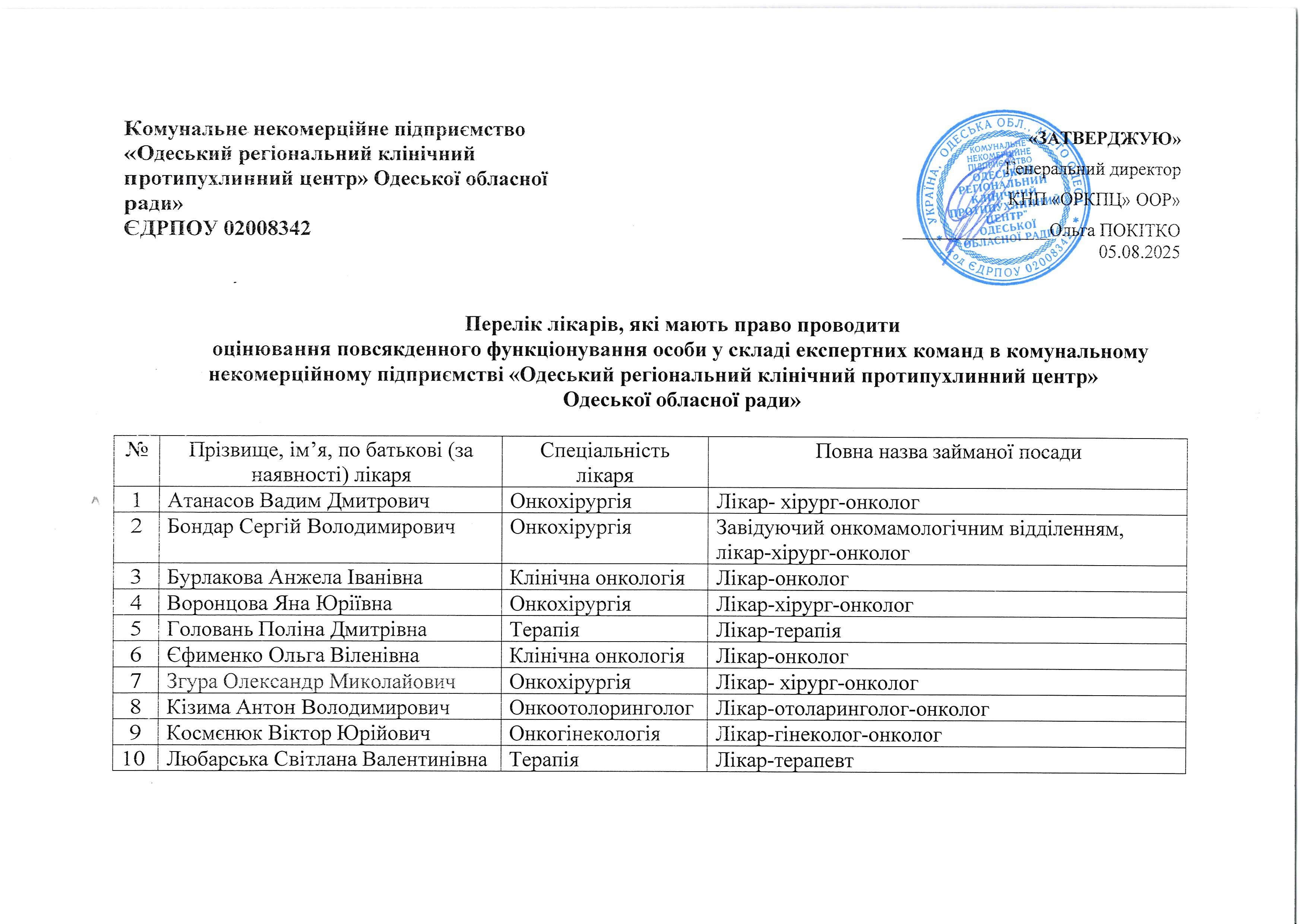 Перелiк лiкарiв, якi мають право проводити оцiнювання повсякденного функцiонування особи у складi експертних команд з оцiнювання повсякденного функцiонування особи
