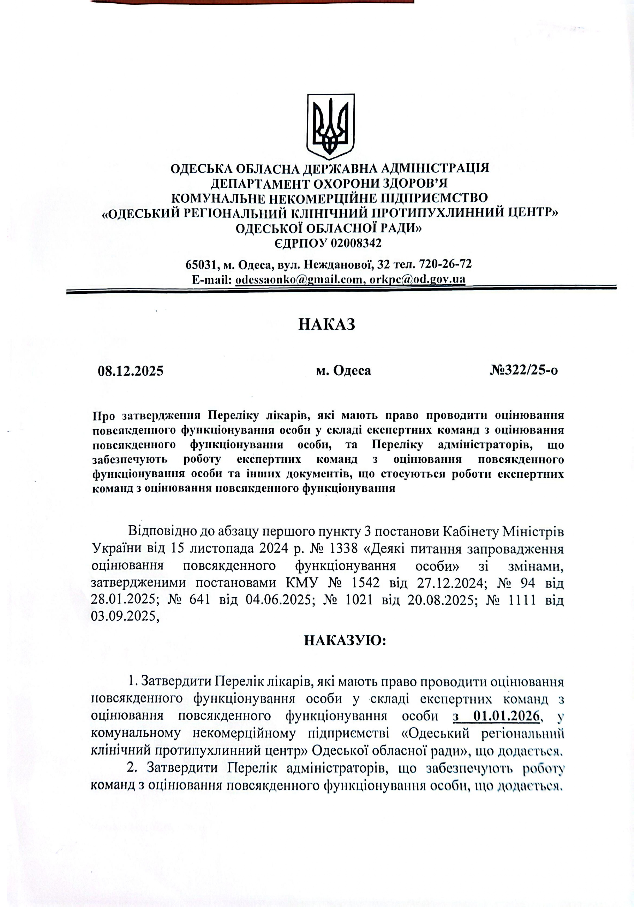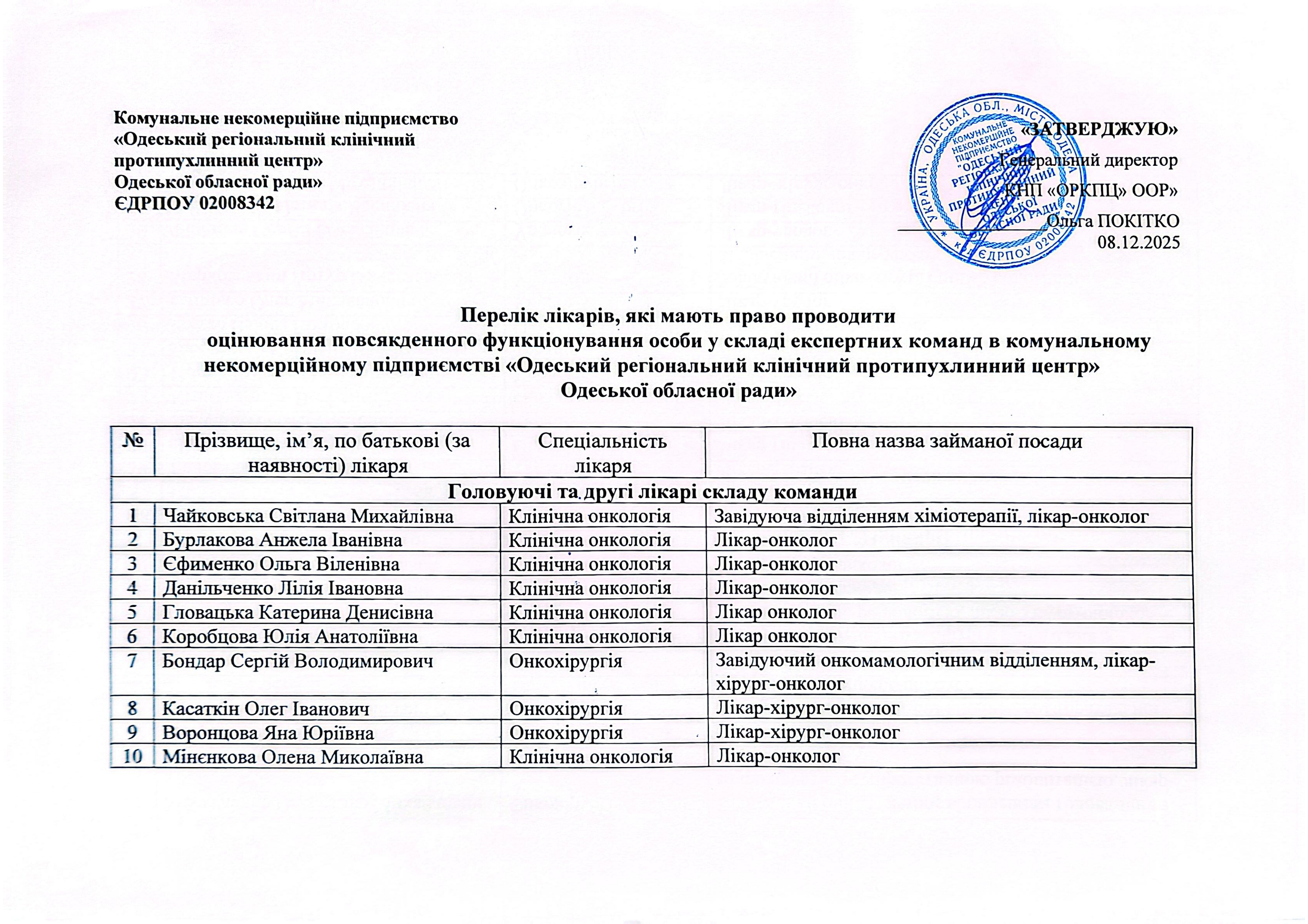 ГоловнаЕкспертиза ОПФОПерелiк лiкарiв, якi мають право проводити оцiнювання повсякденного функцiонування особи у складi експертних команд з оцiнювання повсякденного функцiонування особи